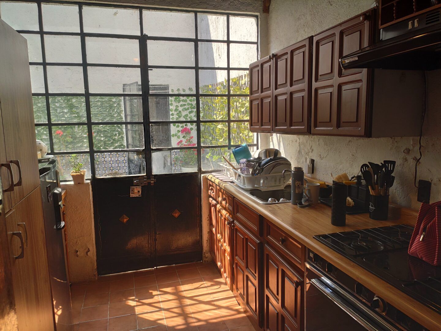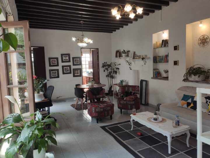 La casa destaca por su estilo tradicional, con detalles como vigas de madera, muros sólidos y un patio que le da un ambiente muy acogedor y privado.