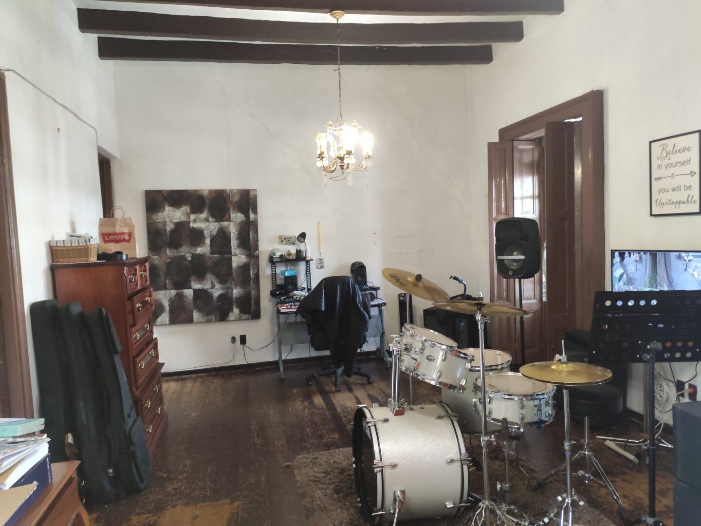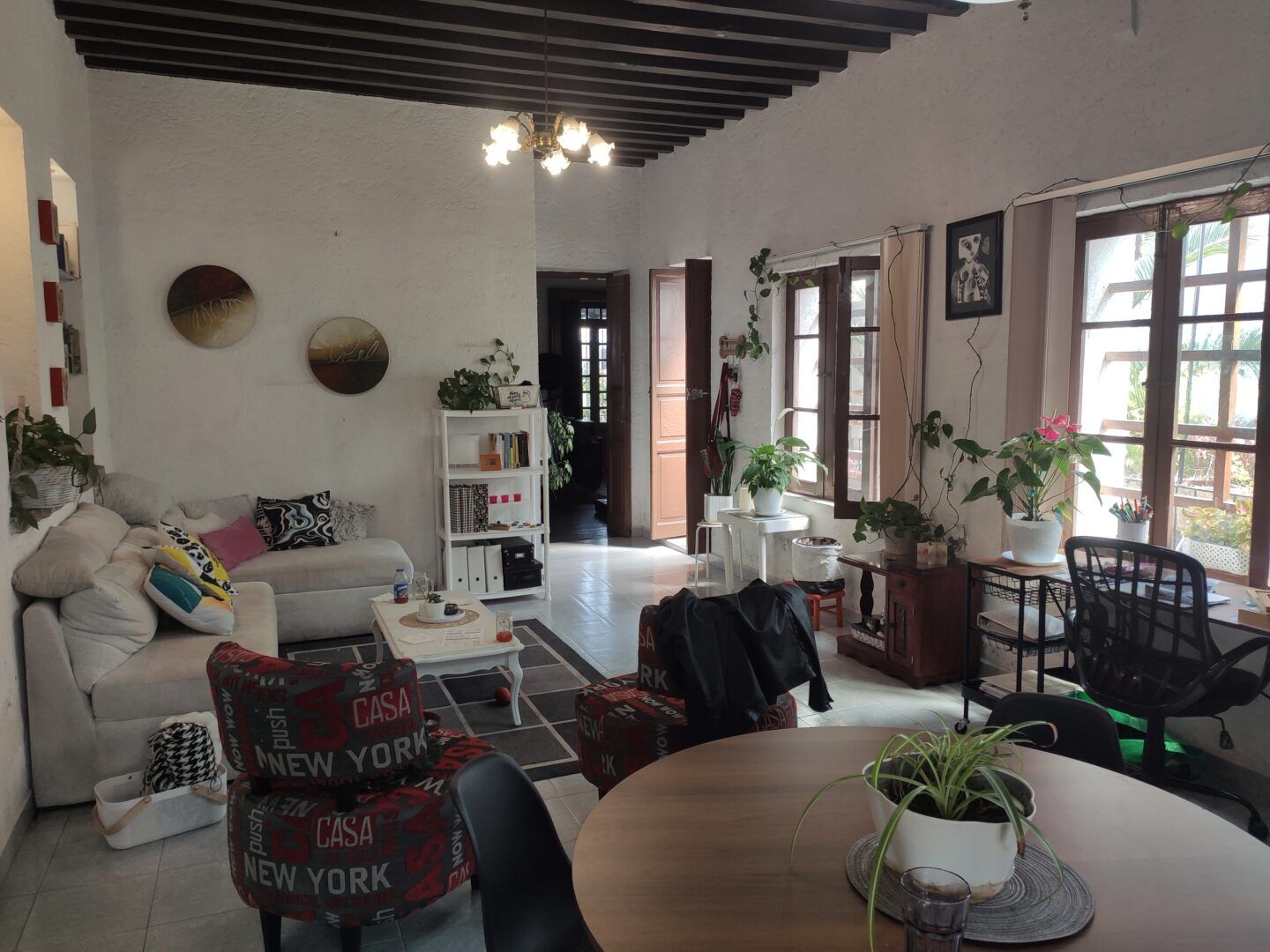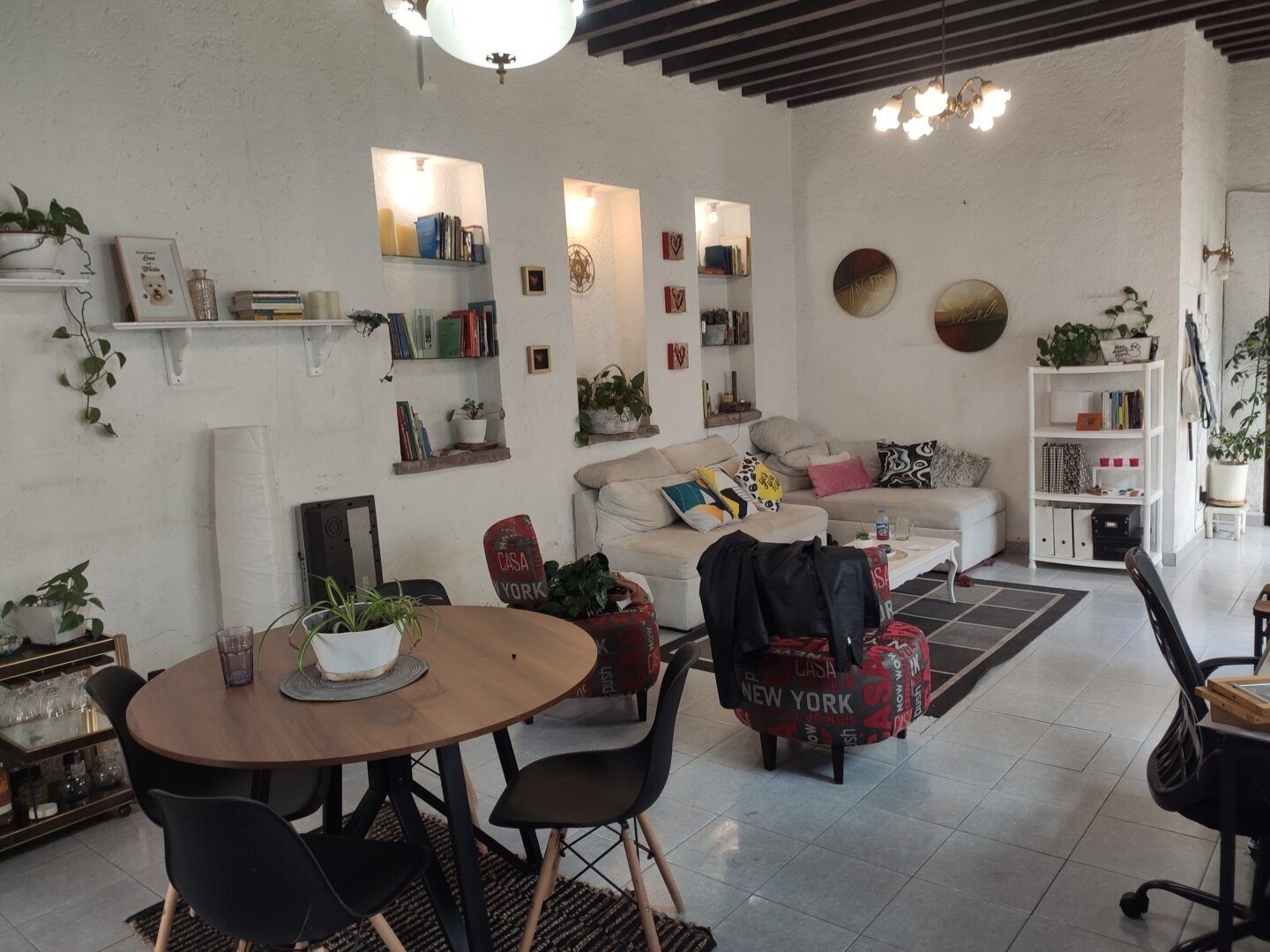 • Amplia sala y comedor con techos altos y vigas aparentes