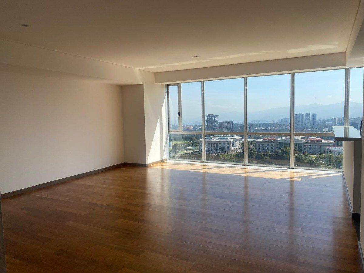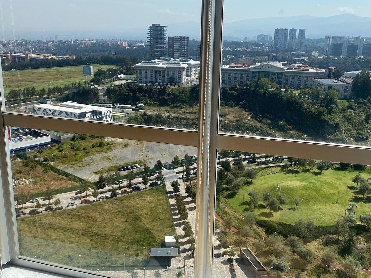 Precioso departamento se renta en High Park Santa Fe, en esquina con vistas espectaculares al Parque La Mexicana y a Av. Santa Fe, con acabados modernos y excelente orientación, lo que lo hace muy iluminado y cálido durante todo el día.
