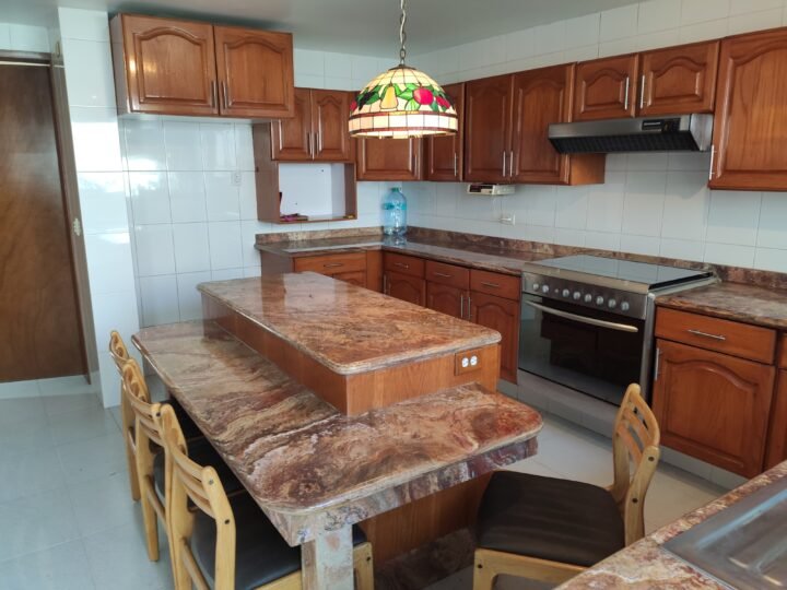 Cocina de muy buen tamaño, con muchas gavetas y barra central